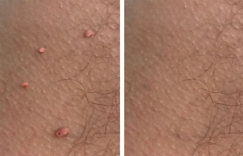 Calming and healing in progress—skin tags shrinking, redness fading.